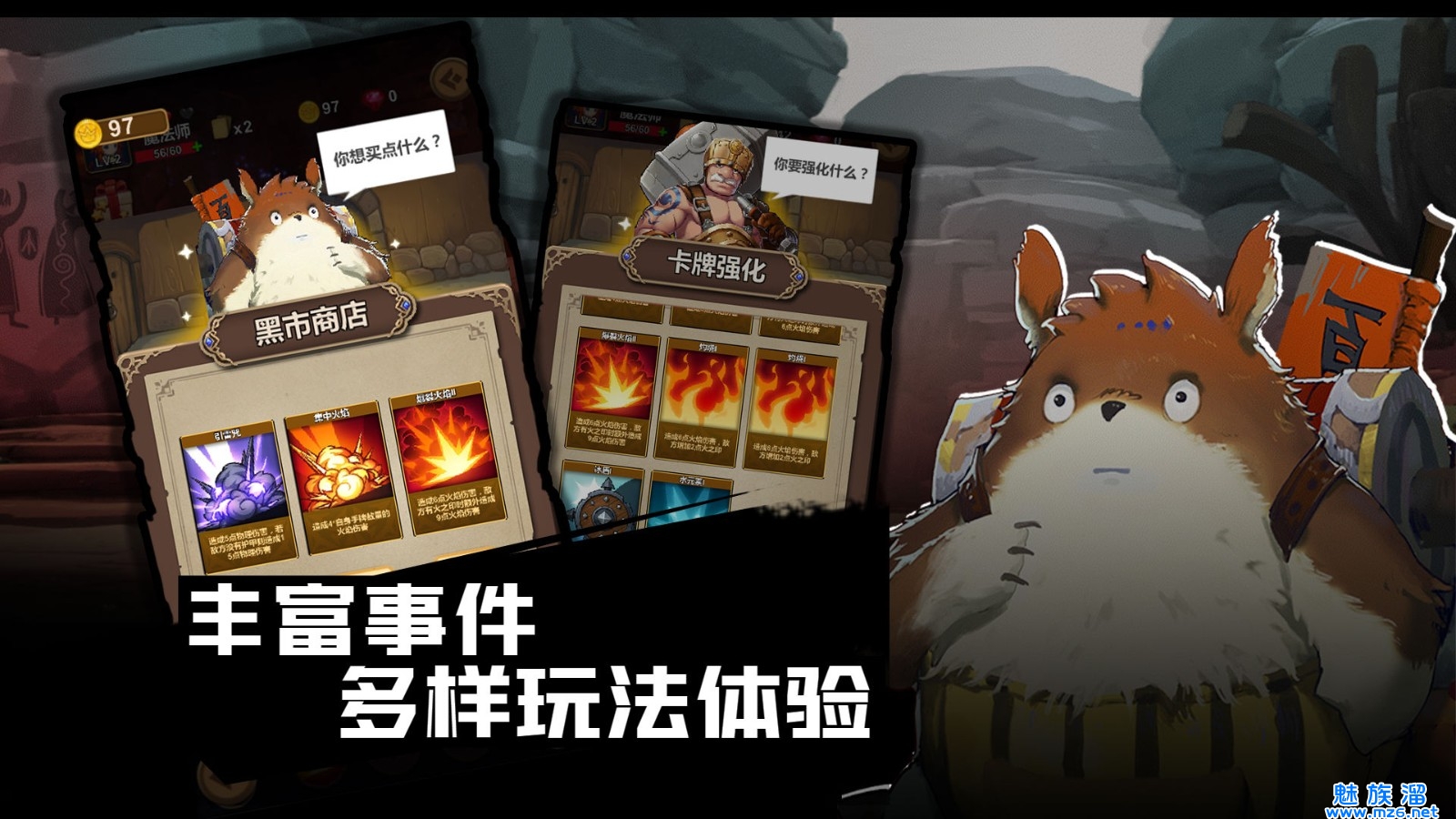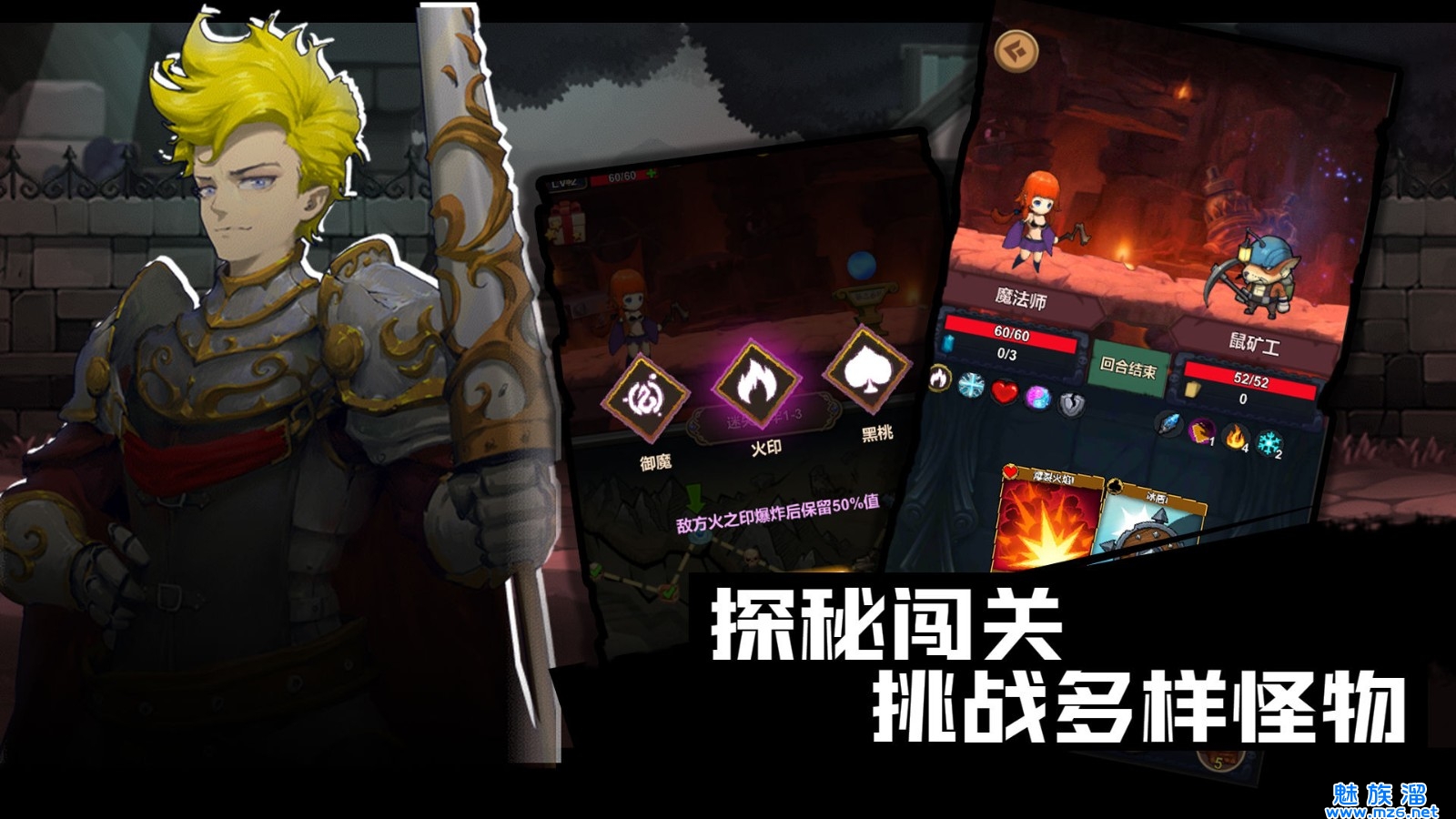 1、通过冒险过程中遇到的随机事件来获得新的卡牌,并根据职业特点与怪物特性做出选择