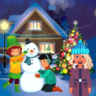 参观联排别墅并在冷雪中堆雪人。用你从超级城市购物中心购买的帽子、夹克和围巾打扮你可爱的朋友。