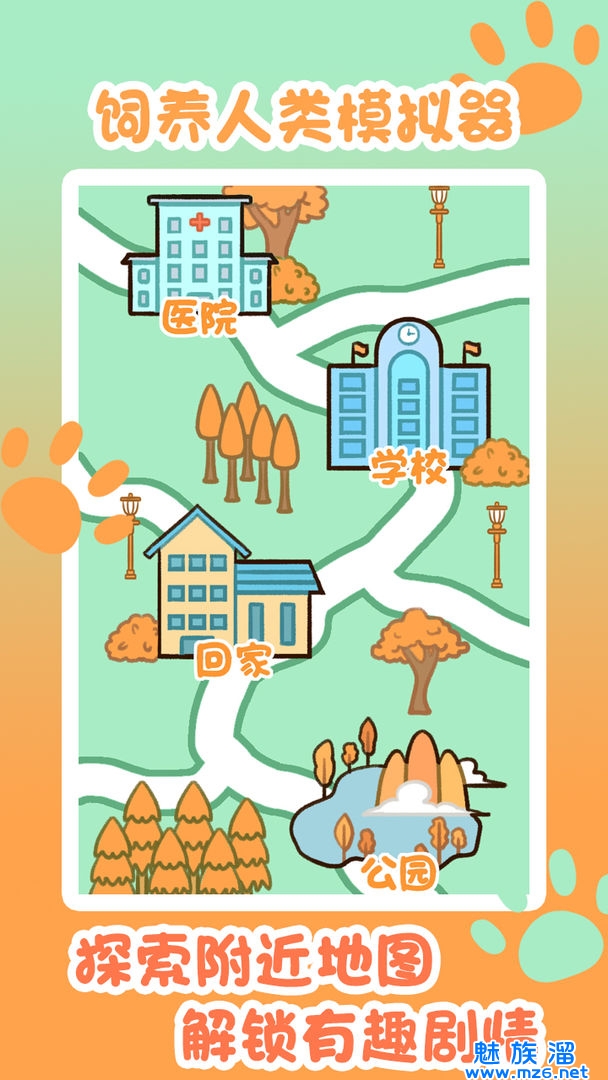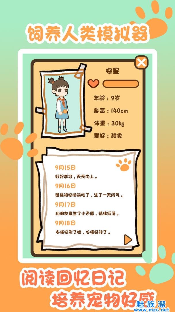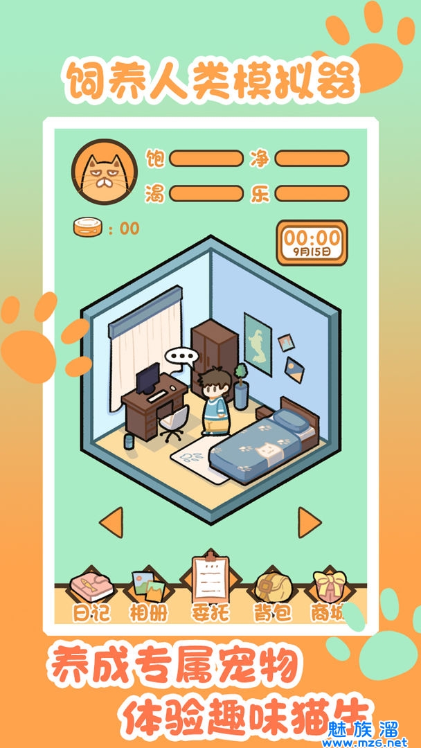 你将在游戏中以一只大橘猫的形象喂养人类。你需要用不同的方式让你的人类快乐,