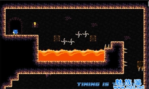 游戏中玩家需要帮助和我们的主角小蓝前后移动,跳跃,躲避各种陷阱和障碍,