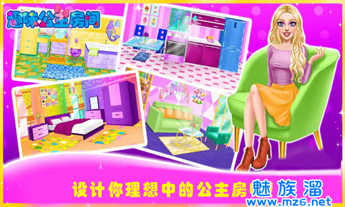 你可以运用你的想象力为公主的新家添加床、椅子、墙壁的颜色和图案、有趣的娃娃等等。