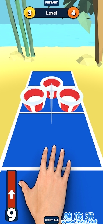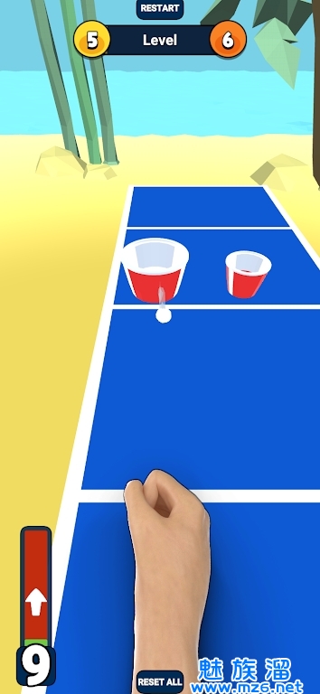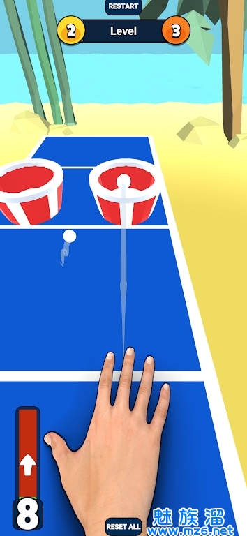 1、游戏的时候玩家你的最终目标就是将乒乓球弹入到水杯当中去。