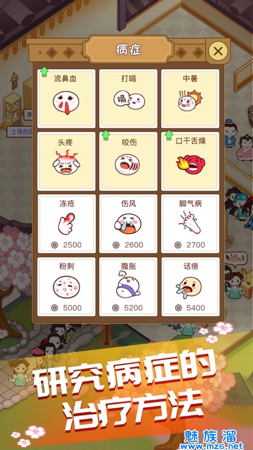 玩家建造医馆基本设施后,会有身患各种病症的病人进入医馆。