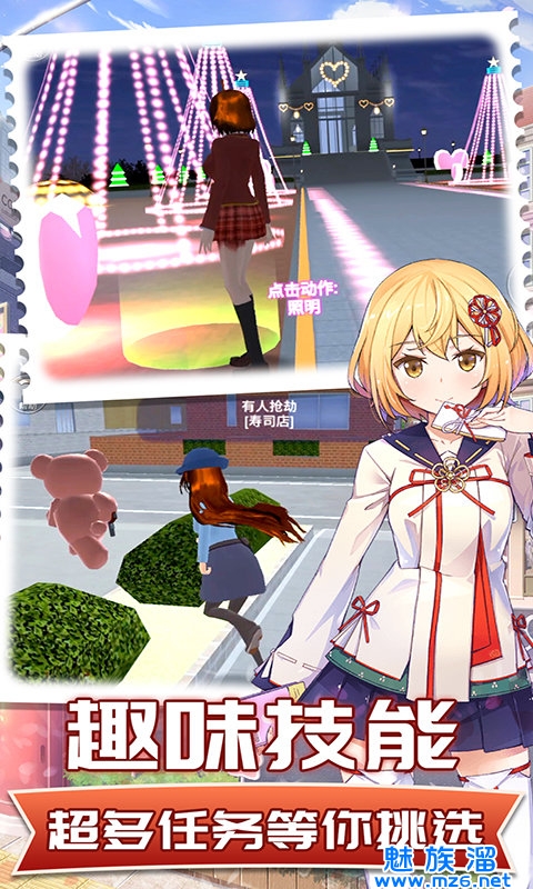 1、玩法比较的自由,梦想的校园世界,这里的各种活动都给你带来多多的乐趣;