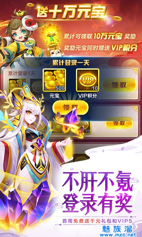 1、新人上线创建角色还能自定义捏脸,海量神器爆率极高,还能连续签到领神兵