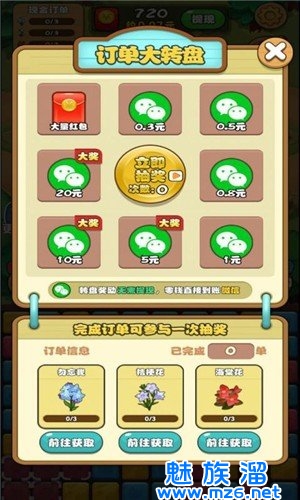 种植一片花田,通过完成消除挑战来获得花朵种子和各种生长道具