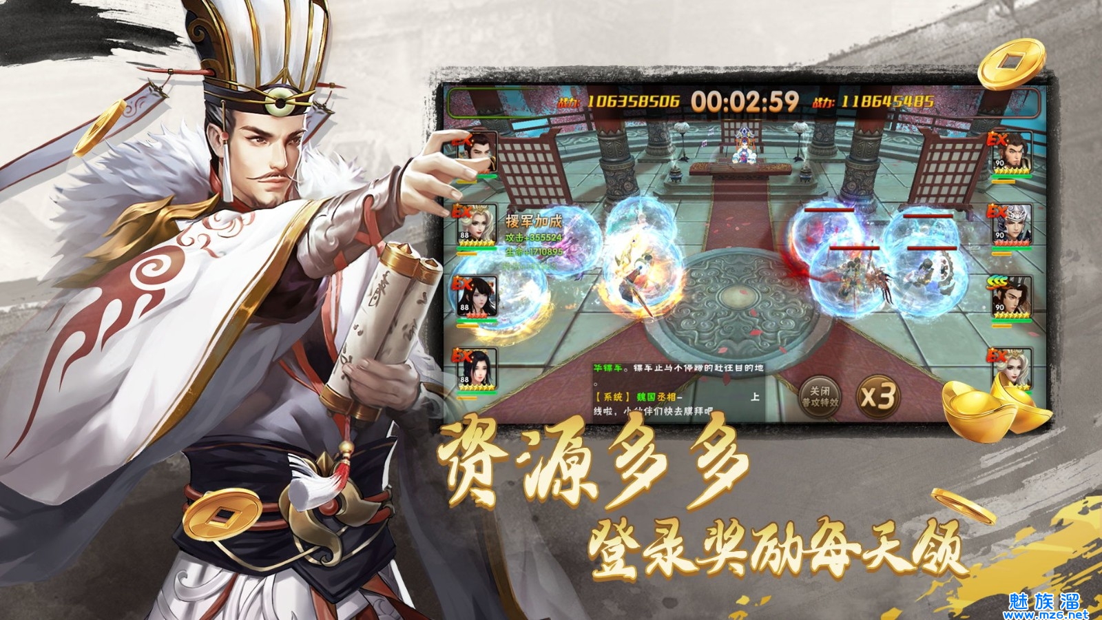 4人阵容,微操走位,方寸之间决定胜负成败!华丽炫彩的战斗特效,十足爽快的战斗体感,畅快的战斗节奏,身临其境体验三国世界的独特风采。