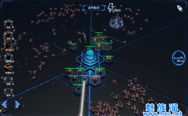 2、位于中心的水晶塔需要面临6个方向通道的攻击,有多达1000个邪恶机甲来袭。