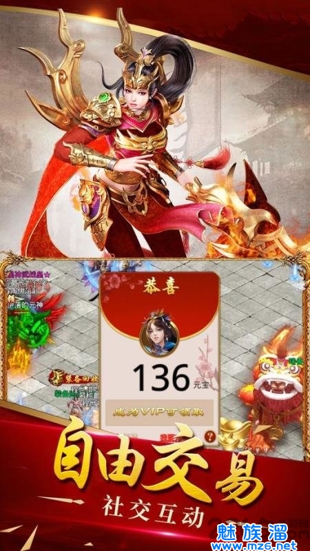 经典三大职业无损还原,急速升级模式,爆装率超高,全天不间断活动!带给你私服般的极致享受!游戏完美呈现殿堂级轻松PK的畅爽感,融入经典万人争霸战、神兽玩法、神兵系统、多人组队等游戏特色,为玩家打造轻松刷怪的极致体验。