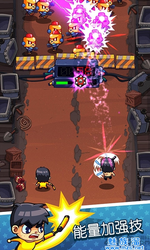 1、消灭来袭的敌人掉落的道具记得拾取,增加你的通关效率。