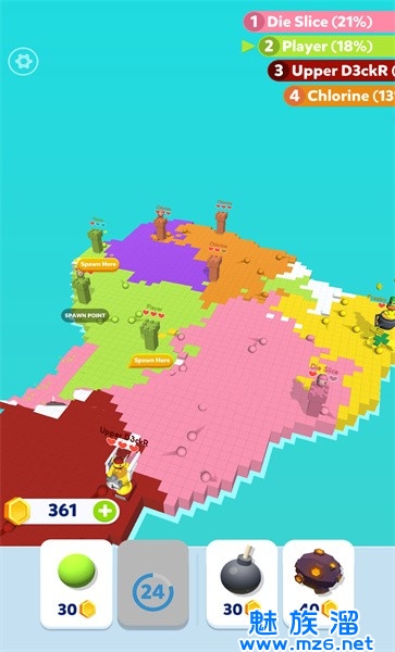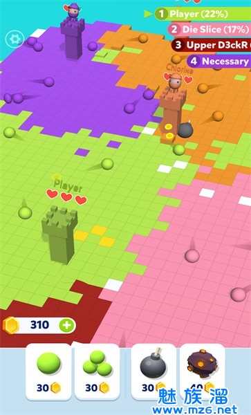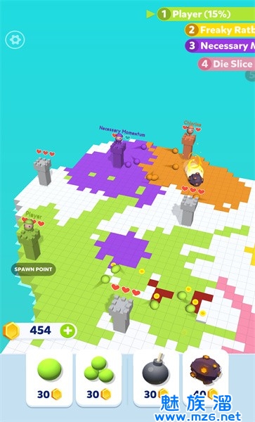 1、玩家需要争夺骰子来获得更多的像素方块,这样才能完成挑战。