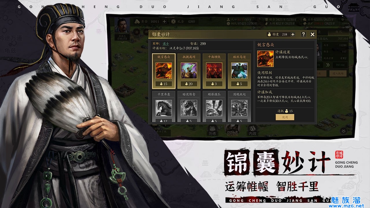 在这里不仅斗勇更需要斗智,实时的计谋也能改变战局结果。即时的指挥,智略的对抗。丰富的锦囊妙计系统,多种计谋的组合使用。