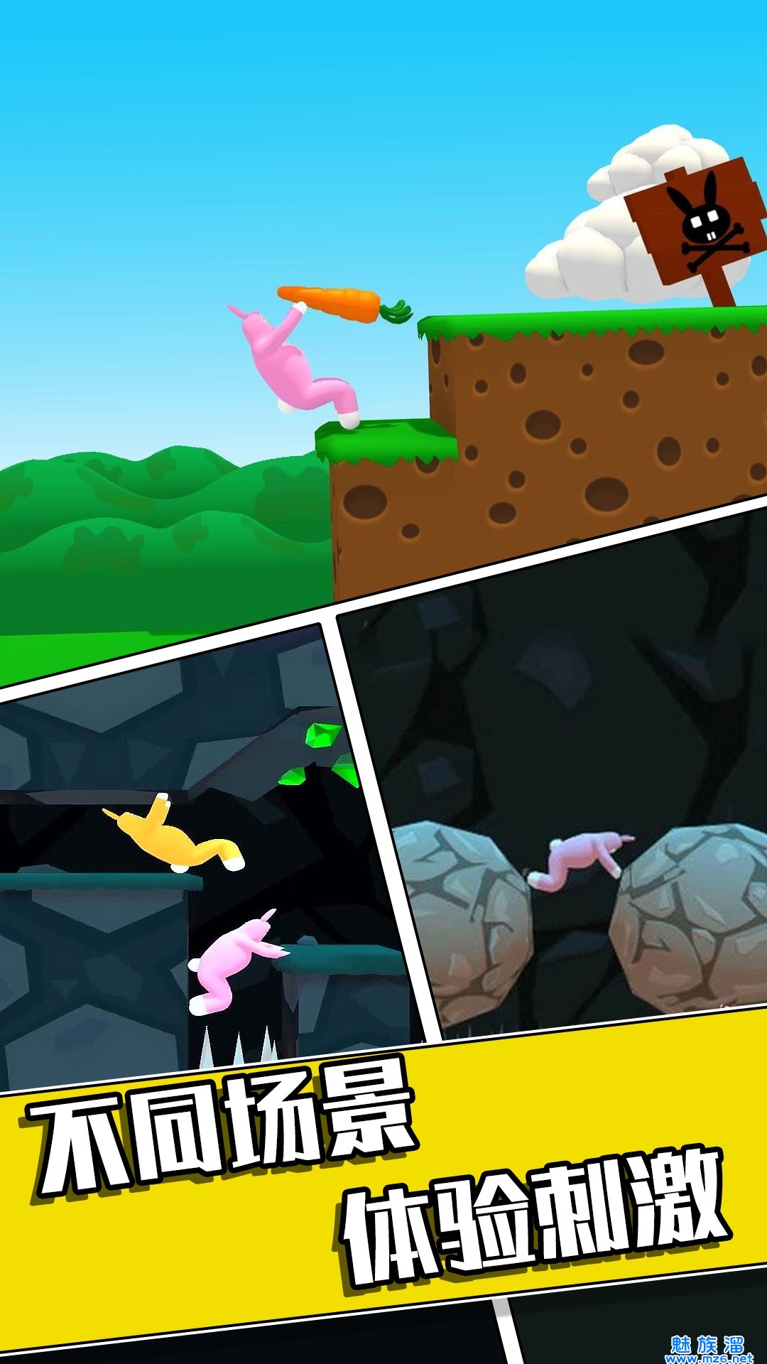 我们需要巧妙地操纵你的兔子来躲避各种陷阱,尽情的在这里畅玩一番。