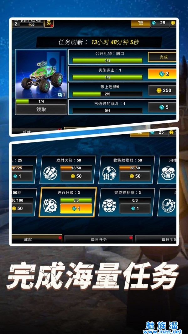 计时赛属于个人挑战类型,玩家可通过计时赛考验自身能力水平,只要在规定时间内通过关卡,就能获得对应的关卡奖励哦!奖励还随关卡而逐步增加,对应的关卡难度也会有所提升。想要成为真正的赛车手吗?想要寻找通关的快感吗?赶快在计时赛中过关斩将吧!