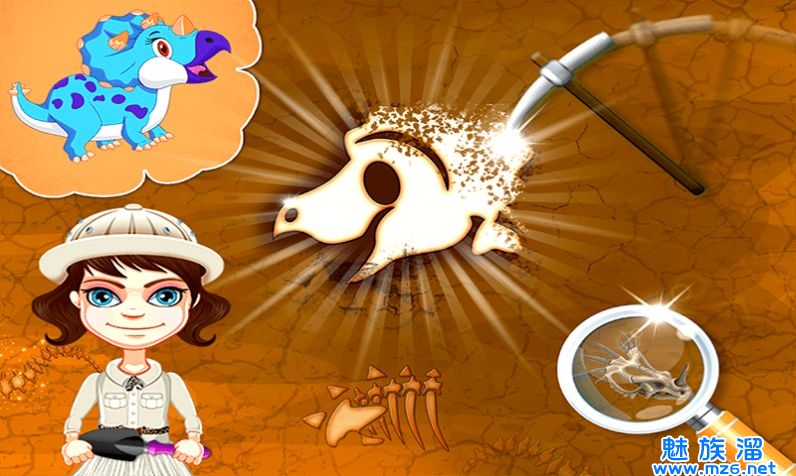 1、恐龙化石寻宝游戏里,玩家们将通过野外考察发现恐龙化石