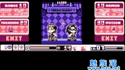 在你的冒险中,你会遇到一个神秘的商店购买盔甲,武器和物品,是你通关路上的强大助力