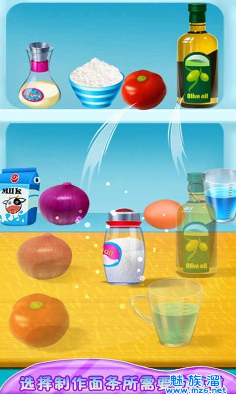 在烹饪意大利面游戏中,玩家需要先准备所需材料