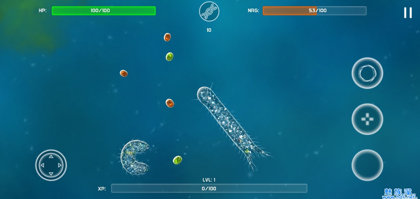 打败每一个对手,吞噬它们为自己所用,生长体型,完成生物的进化。