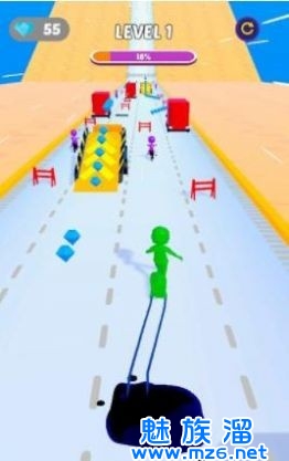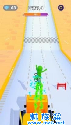 在跑道上还有很多的栏杆的存在会阻拦玩家的前进的,这就需要你灵活的手指控制来避开所有的东西了。