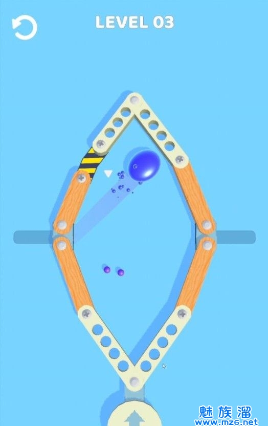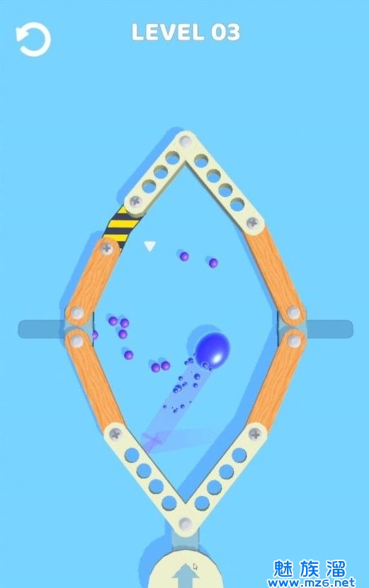 收集散落在木条上的小球,并将它们从木条上弹出来,以这种方式完成关卡挑战。