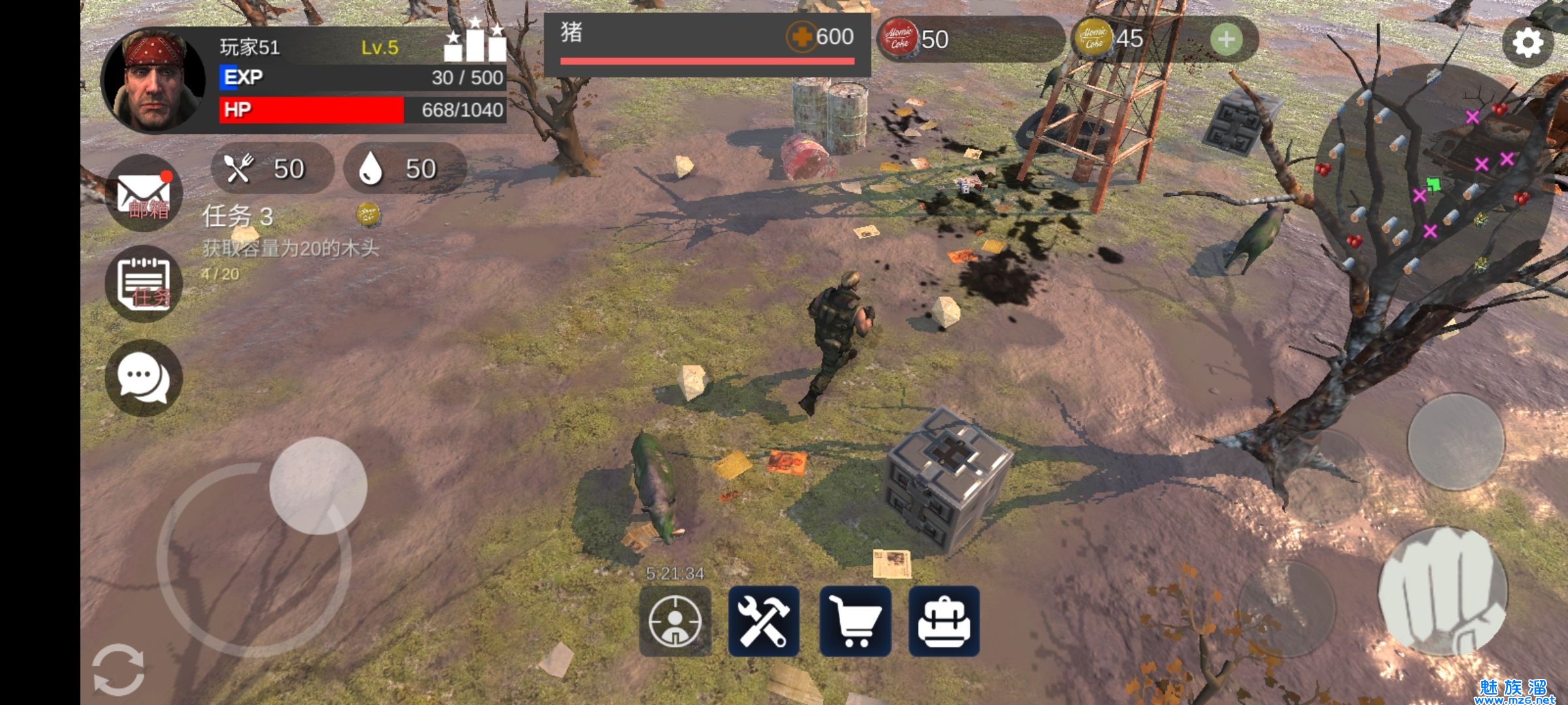 幸存者需要对抗饥饿,口渴,各种变异的动物以及变异人