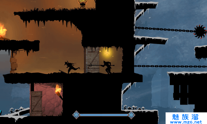 不仅仅是一个跑酷游戏,我们要跳陷阱,要躲尖刺,还会有敌人,距离远站在我们上方的建议取施来用飞镖,距离很近或者在我们下面的,直接近身然后用左边那个挥刀飞过去的技能。