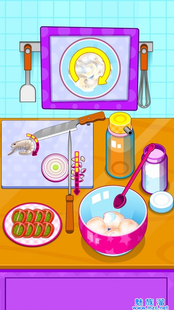 2.料理制作模拟游戏里有不同的食材和厨具。