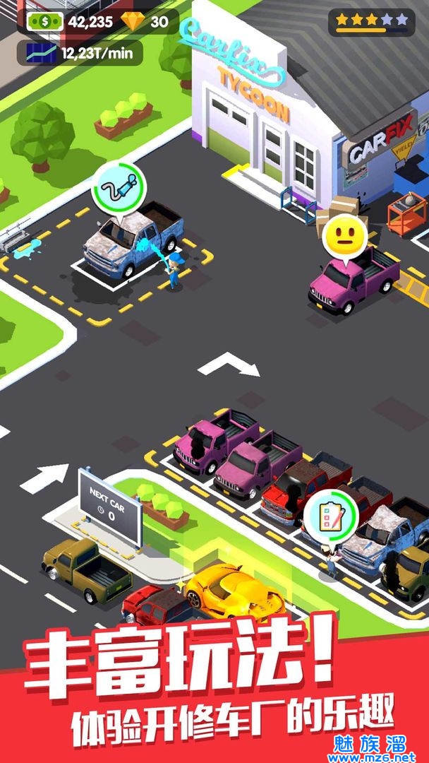 修车厂大亨这是一款卡通风格的模拟经营手游,