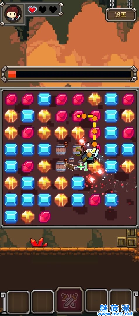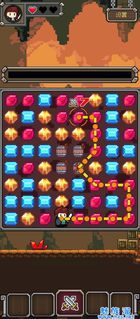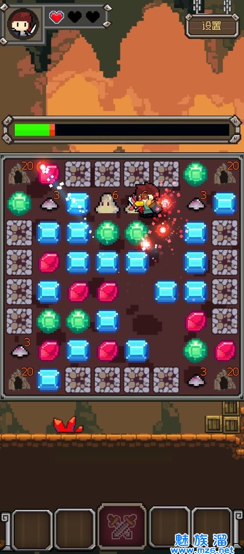 搜寻各种宝石,游戏以消除的方式进行冒险战斗,