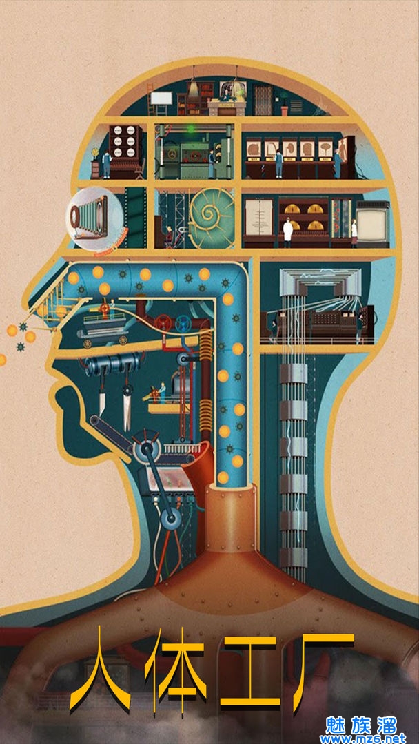 4、它将人体的生理机制用工厂和小人的方式呈现出来——经理坐在位于大脑的办公室里,流经四肢和器官的通讯线缆把各个“部门”串起来。玩家戳屏幕来观赏工人们运转机器:用滑轮抬起眼皮,撑大瞳孔让光照进来,看细菌如何经过鼻腔过滤被消灭大半,而牙齿变成了切割机。