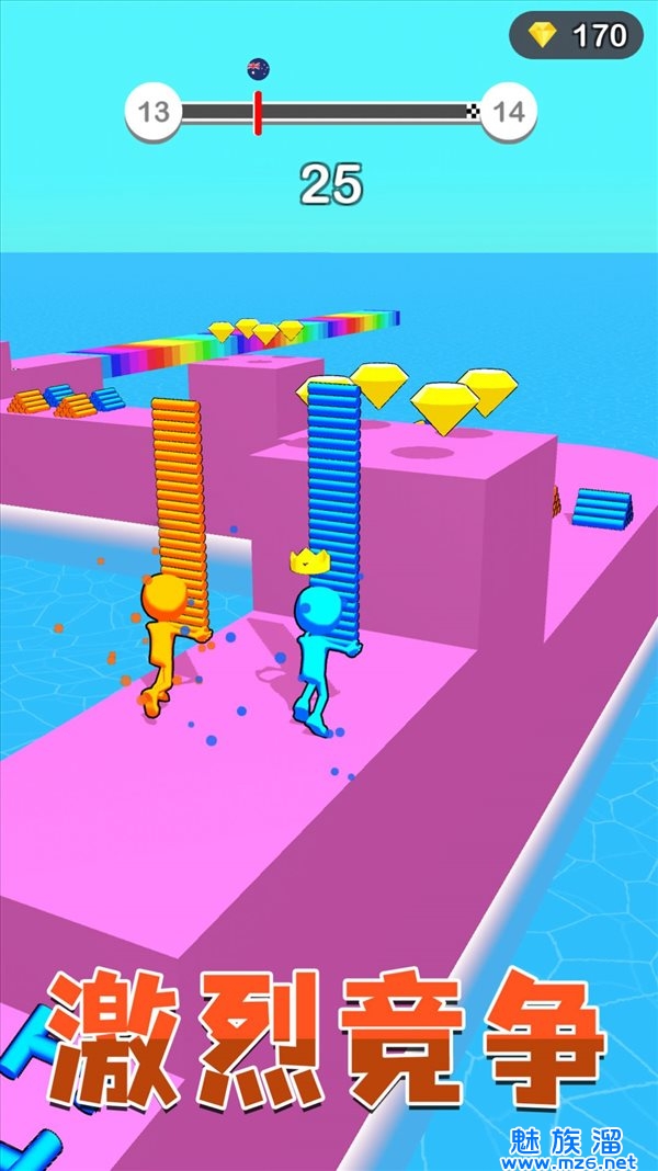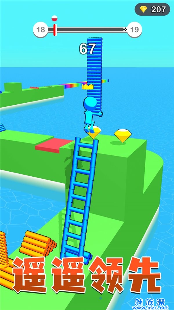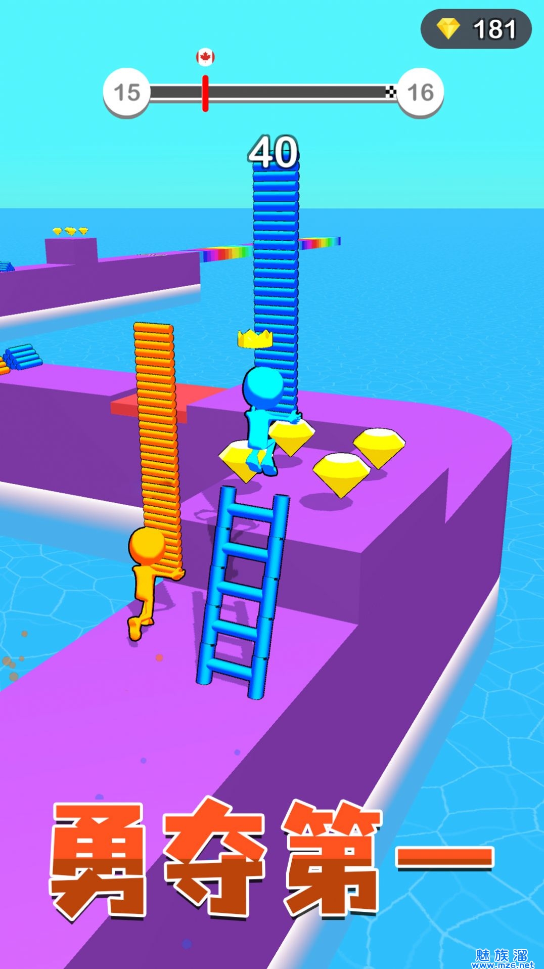 2、点击按住建立楼梯,爬上楼梯以克服障碍,并在楼梯比赛中到达终点。