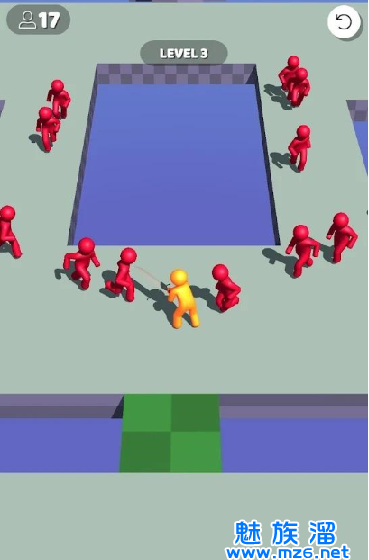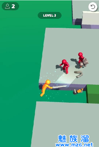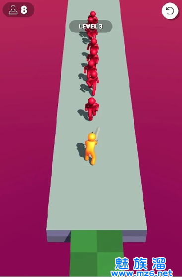 玩法很简单,点击开始游戏,然后随意滑动屏幕控制角色移动,左右滑动或转圈,砍杀敌人并安全到达终点,即可获胜。