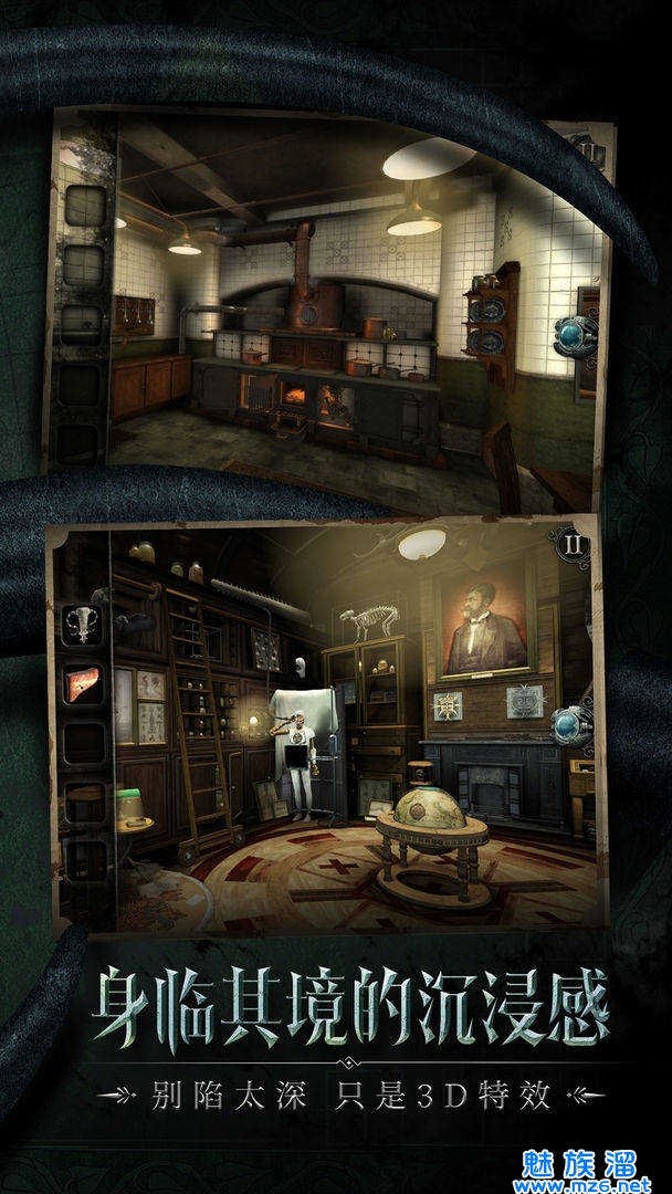 你将以第一视角穿梭在布满各式精巧机关的房间里,真实的3D场景道具、逼真的光影效果,配合引人入胜的主线剧情和充满神秘感的音乐氛围,久而久之让你似乎忘记这是一部游戏,而是置身于一个真实的迷室空间。