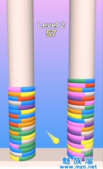1、游戏画面简约,各种颜色的彩环交错在一起,这样的画面还是挺好看的。