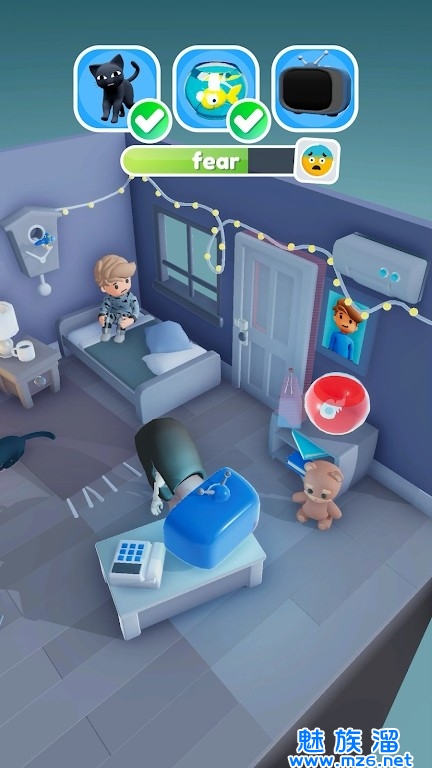 游戏中不需要玩家怎么想,会提供很多种恶作剧玩法,你只用选择自己的想要的恶作剧方法来整蛊房间里的人。