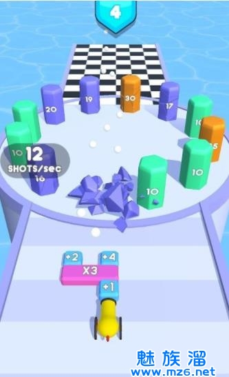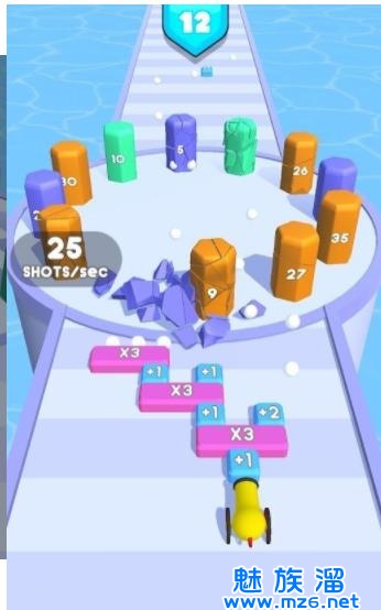 3、以收集更多的乘数帮助小炮发生更多子弹,消灭障碍到达终点。