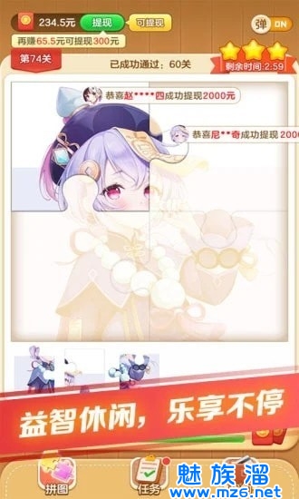 丰富多彩的副本难度大,操作简单,玩拼图,赚零花钱。