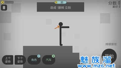 2、多转换火柴人姿势进行尝试,一般不规则的姿势摔伤程度更大;