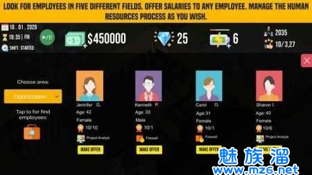 这是一款非常有趣的创业科技公司类型的游戏,游戏主要是以模拟经营为主;