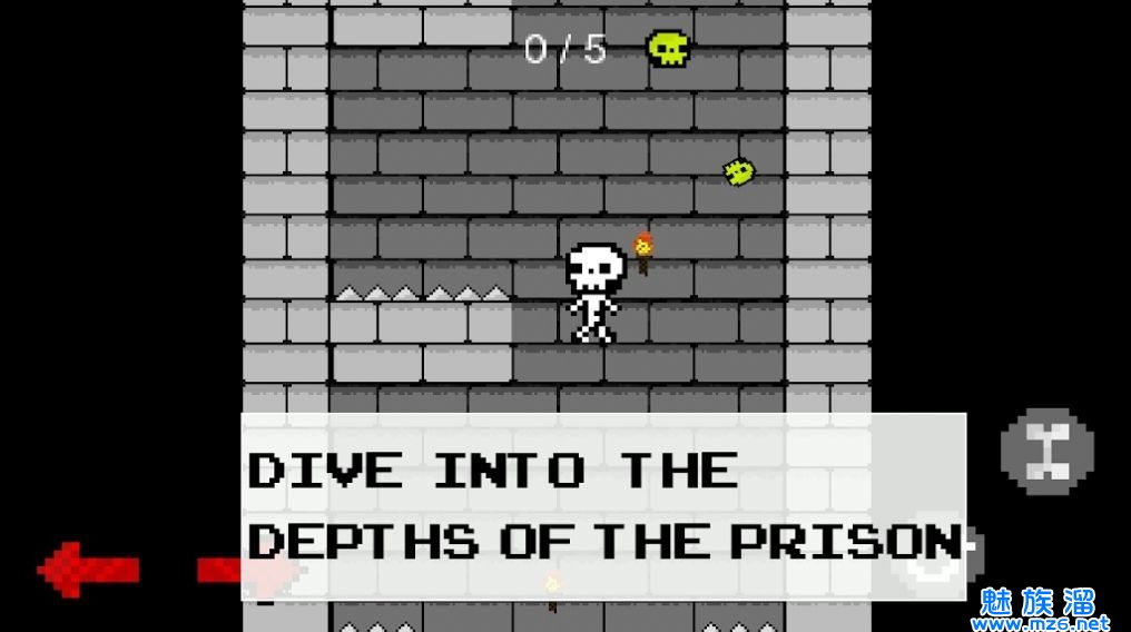 2、在新手关卡时,根据游戏中的红色图标来走图,骷髅的生命只有五次;