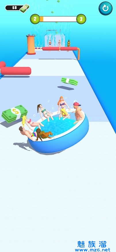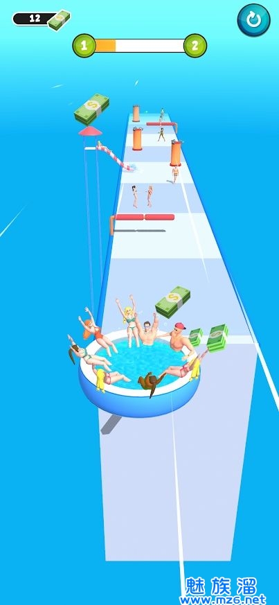 1、热水浴缸冲刺这个游戏超级简单超级刺激,你只需要在屏幕上滑动手指就可以完成闯关。