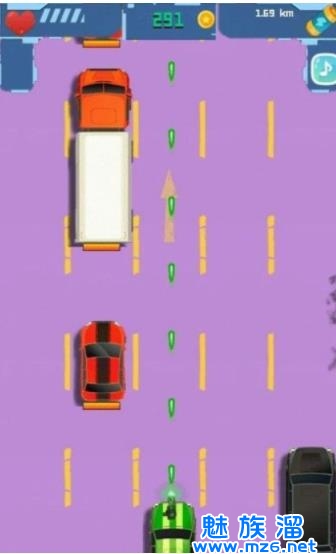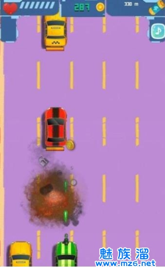 2、你的血量有限,小心,撞到车辆会令你掉血,血量归零则游戏结束。