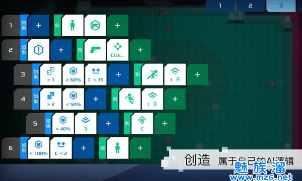 异常是一款游戏AI和科技结合的休闲益智类战斗手游,玩家在游戏中能够体验到虚拟世界带来的全新体验感,玩家的任务就是操控自己的机器人击败其他玩家编程的机器人,玩家需要思考如何布置好机器人的进攻路线和配置,同时还有许多循环和测试的编码等待你来设计。