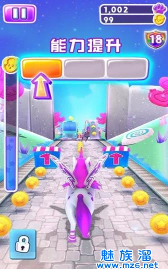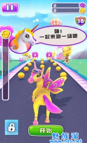 1、独特的独角兽作为主人公的跑酷游戏,跟着可爱的独角兽一起体验刺激跑酷。