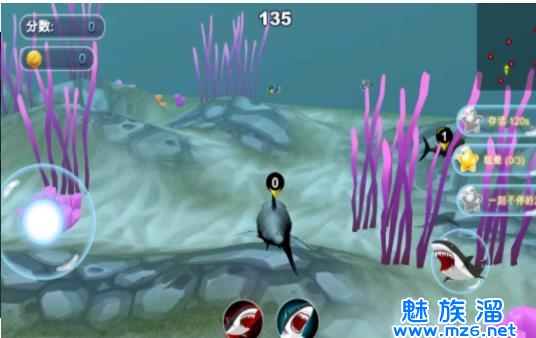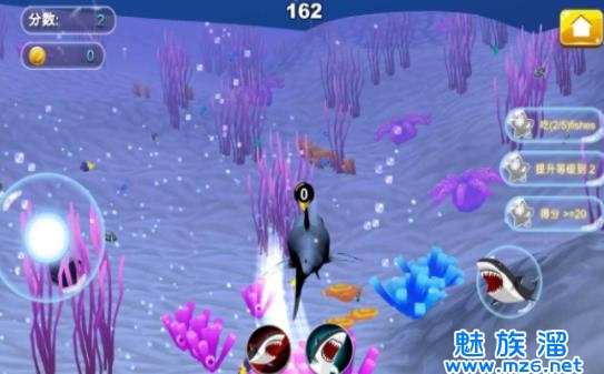 5.在游荡穿梭中通过吞食其他人比自己的等级更低级鱼类进行提升,小心在成长中千万不要被其他物种吞食掉!