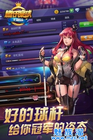 尖端巧粉,杆杆随心,游戏中配置多种属性、不同品质外形的球杆和球桌,超炫球技,彰显至尊身份。