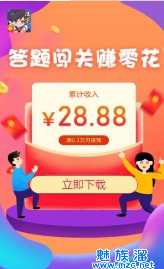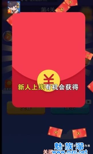 2、汉字答题闯关答对送红包,新手上线小额红包;