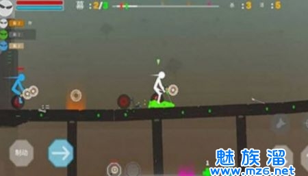 1、控制火柴人驾驶着独轮车来完成闯关的玩法,游戏过程之中玩家可以相互干扰和攻击。