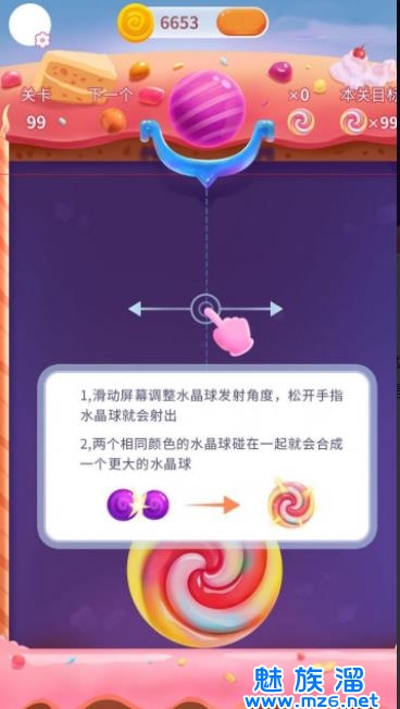 1、滑动屏幕调整水晶球发射角度,松开手指水晶球就会射出。
