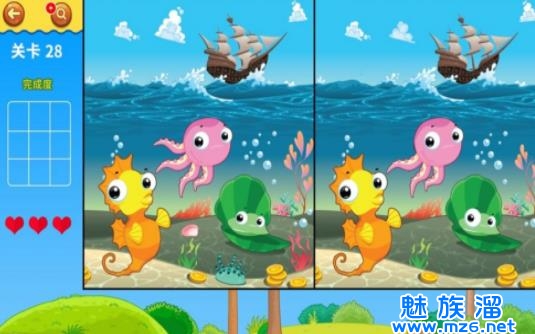 1.游戏图片采用动漫风格,十分的可爱有趣,再找出不同的时候也可以帮助小孩子来识别小动物或者物品。
